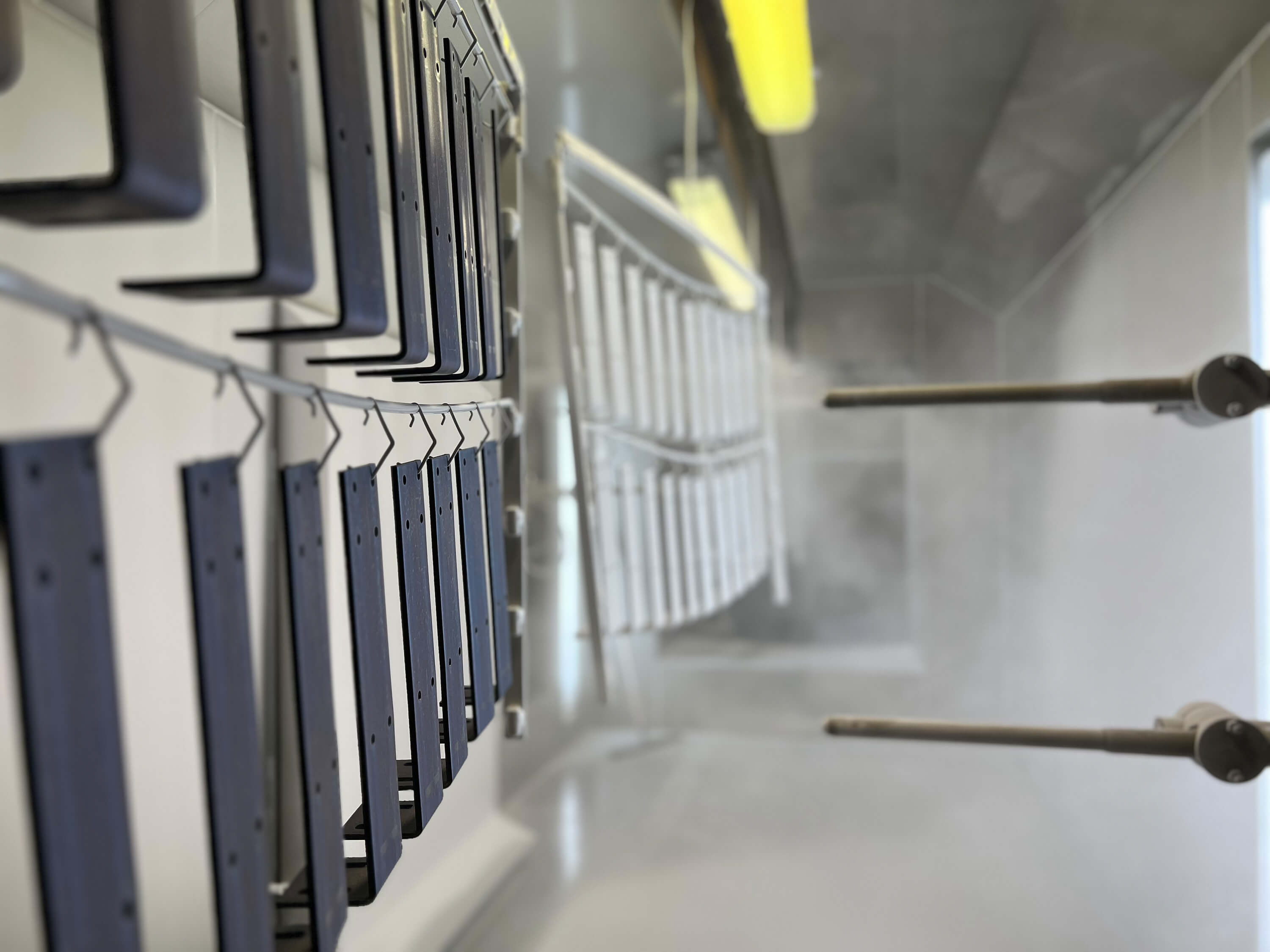 - Zwei Beschichtungskabinen für schnelle Farbwechsel